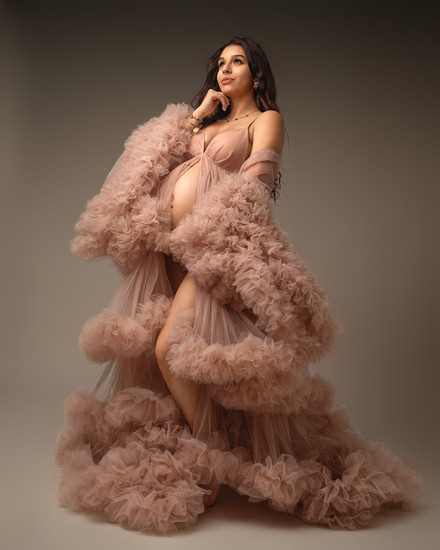 Certaines futures mamans arrivent avec une envie très précise. Elles rêvent de douceur, de légèreté, de tissus qui flottent autour du ventre. Les séances grossesse en tulle ont ce côté presque irréel. Le tissu accompagne les mouvements, capte la lumière, enveloppe le corps sans jamais l’enfermer. On prend le temps, on ajuste, on respire. C’est souvent une séance très féminine, très délicate, où l’on se sent comme hors du temps.